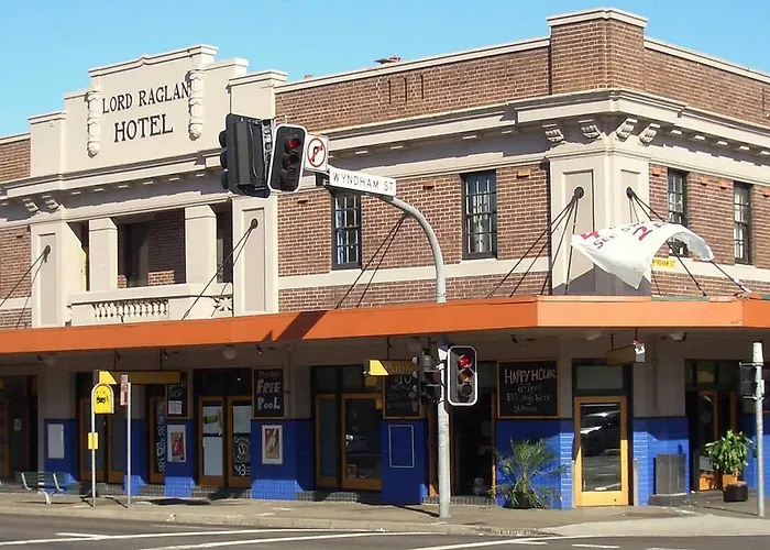 Das Lord Raglan Hotel Sydney bietet ein Restaurant an und liegt rund 3 km vom Sydney Tower Eye SKYWALK entfernt.